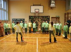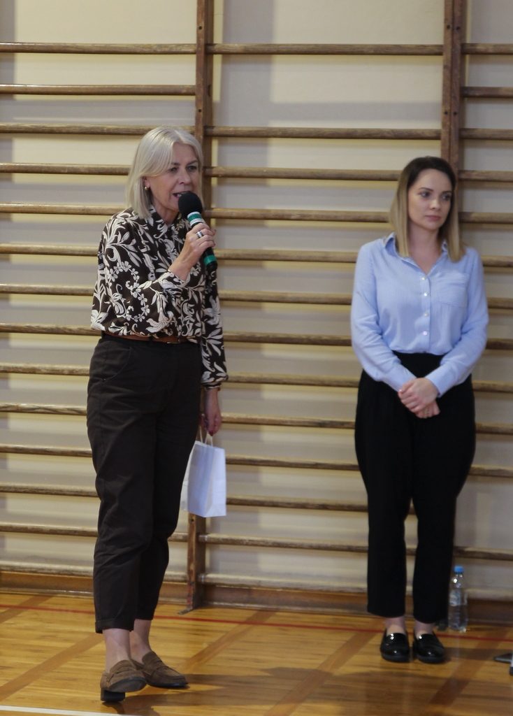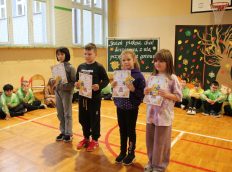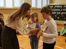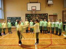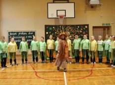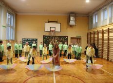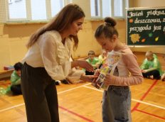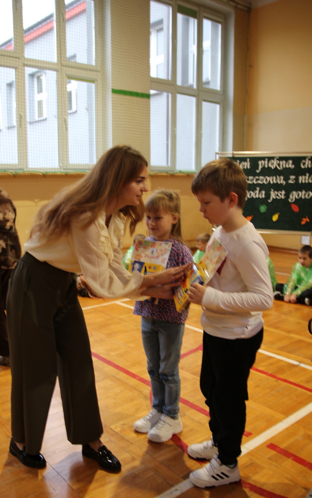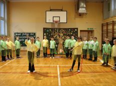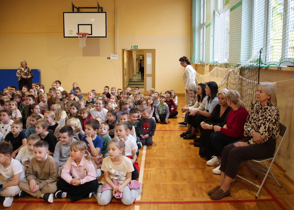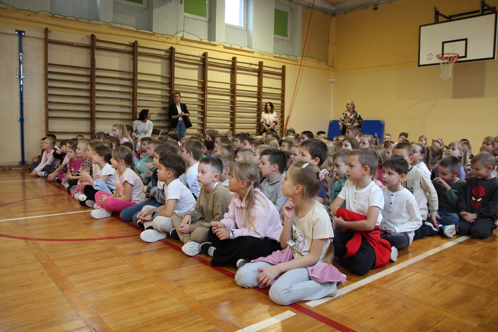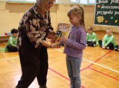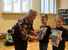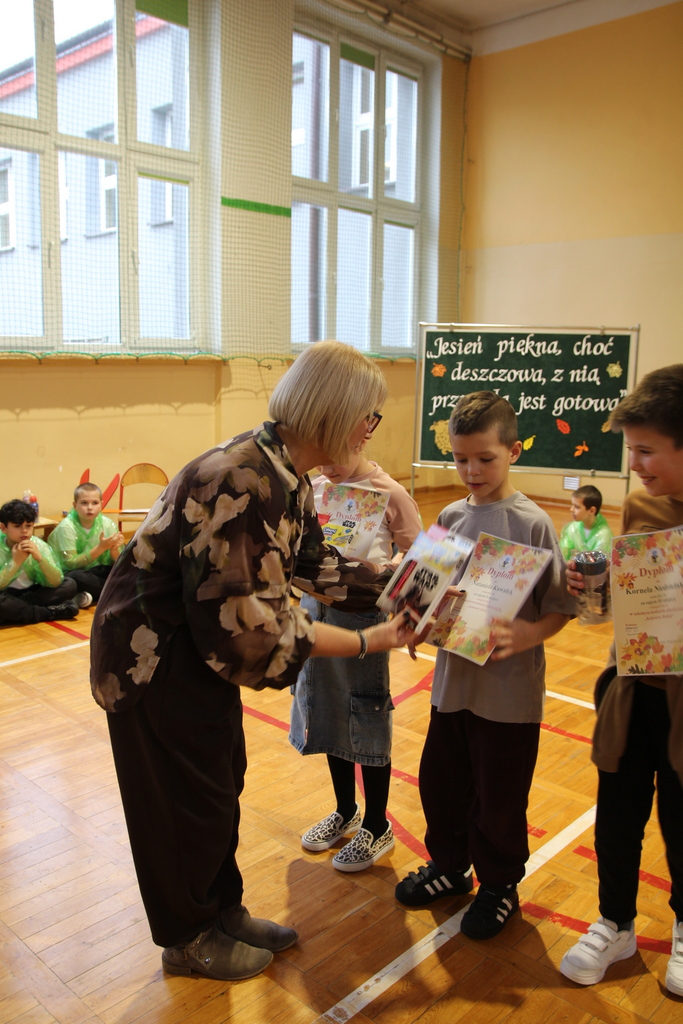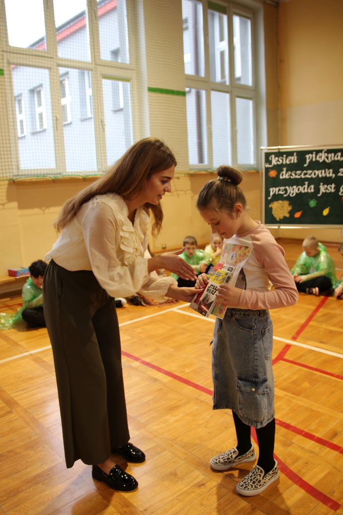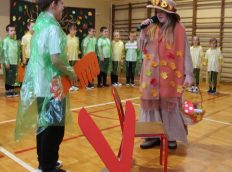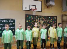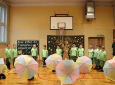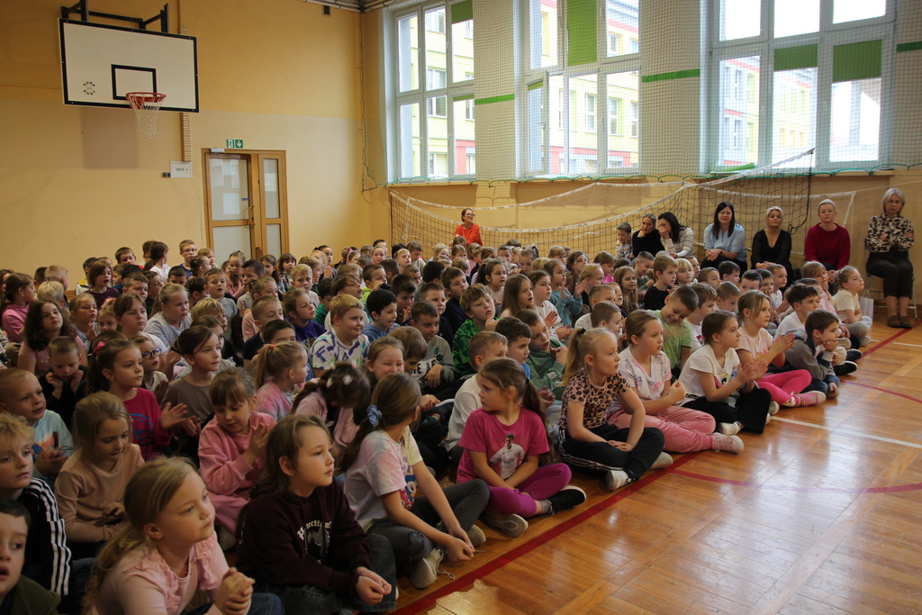 Uczniowie zaprezentowali wiersze o pięknej, złotej jesieni. Główną rolę odgrywała Pani Jesień, która powitała wszystkich ciepłym uśmiechem i opowiadała o swoich darach. Całość uświetniły radosne piosenki, które wprowadziły w jesienny nastrój. Dziewczynki wykonały piękny taniec z parasolami, a na koniec uczennice zatańczyły układ mażoretek z batonami przy jesiennej piosence.