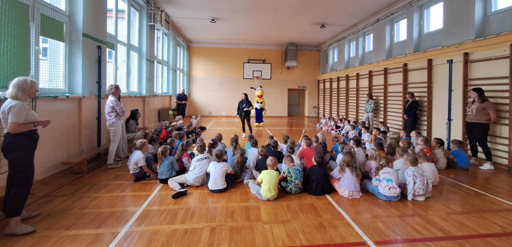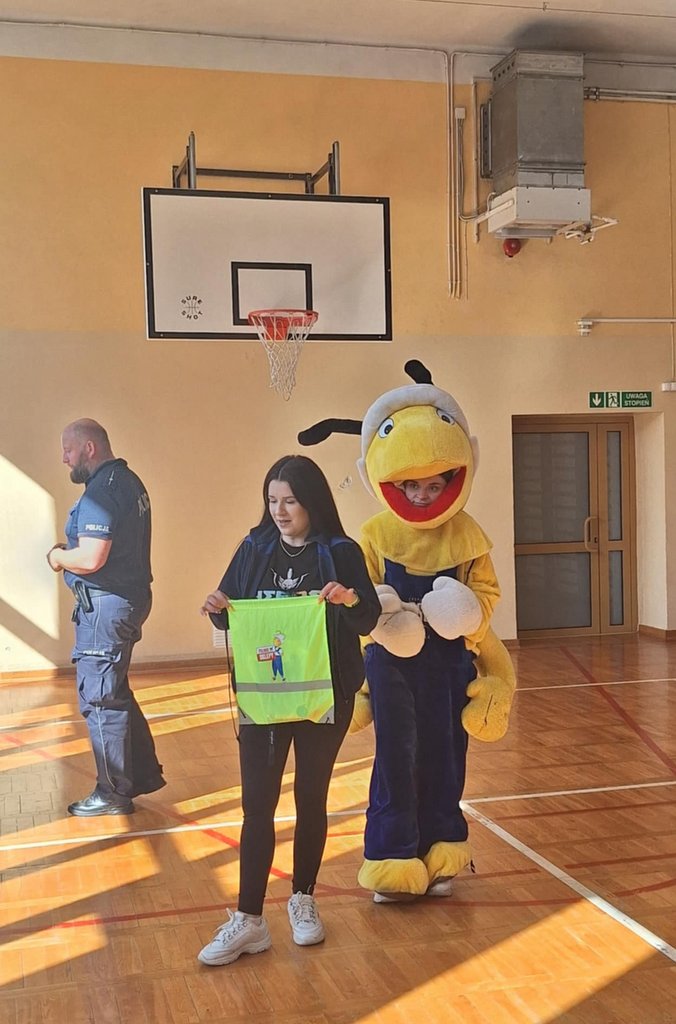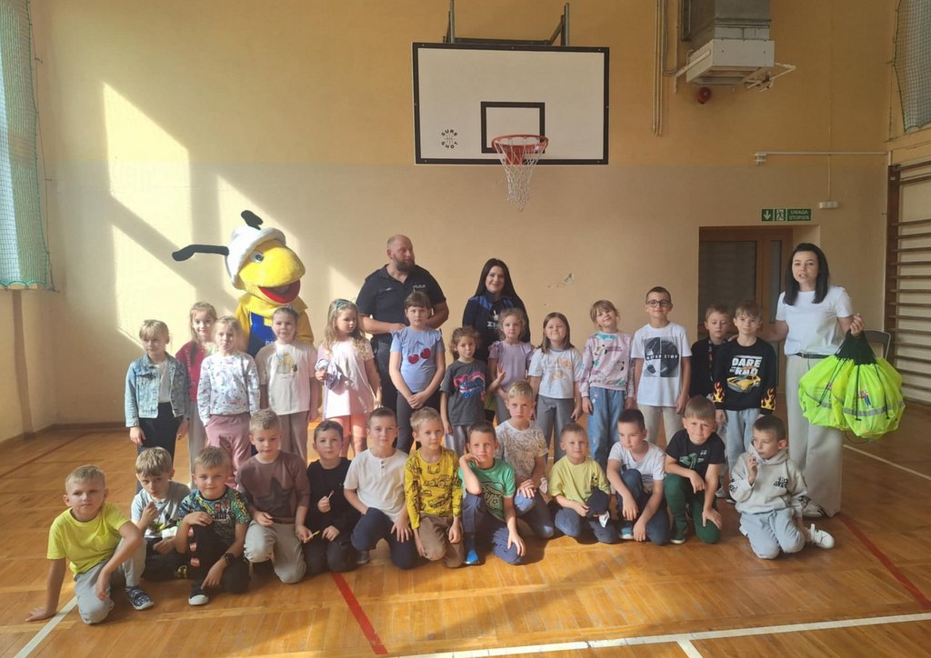 Podczas spotkania poruszono temat bezpieczeństwa na drodze, szczególnie w kontekście najmłodszych uczestników ruchu. Każdy uczeń otrzymał zestaw elementów odblaskowych – kamizelki, opaski i inne gadżety poprawiające widoczność. Zachęcamy wszystkich uczniów do ich regularnego noszenia w drodze do i ze szkoły. Warto pamiętać, że odblaski mogą uratować życie – zwiększają widoczność pieszych i znacznie zmniejszają ryzyko wypadków.
