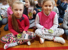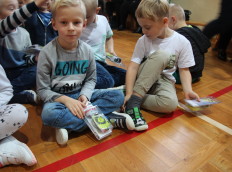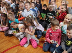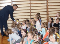 Podczas spotkania pierwszoklasiści otrzymali odblaskowe elementy ubioru