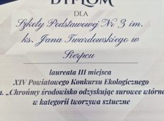 Nasza szkoła została laureatem III miejsca w kategorii – tworzywa sztuczne oraz zajęła III miejsce w kategorii – baterie. Otrzymała również dwie nagrody rzeczowe w postaci laserowych drukarek z kompletem tuszy oraz plansze edukacyjne.