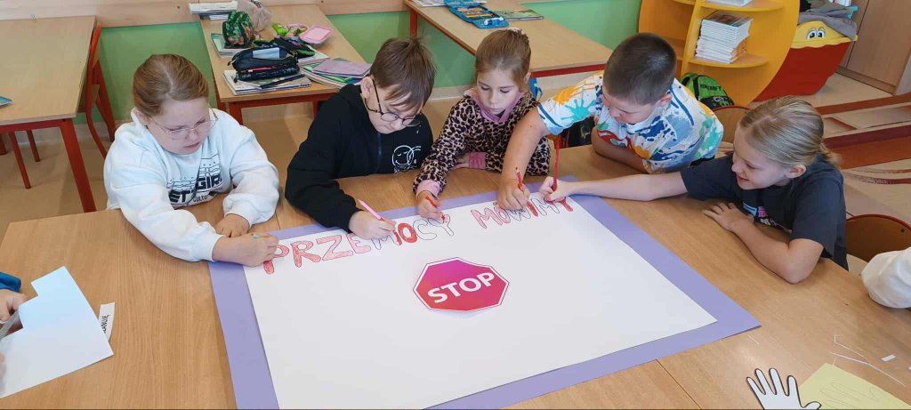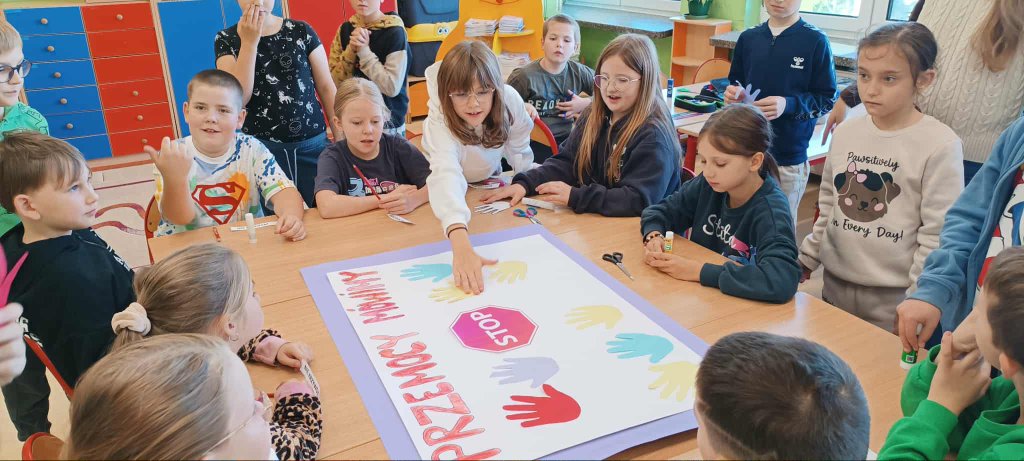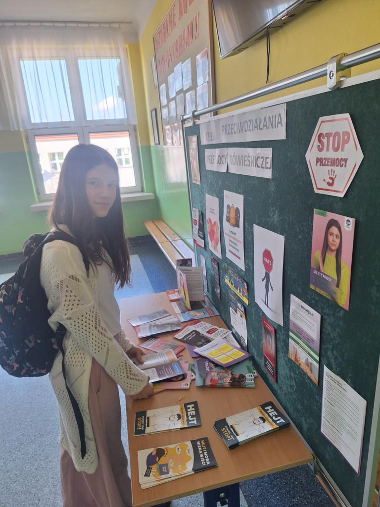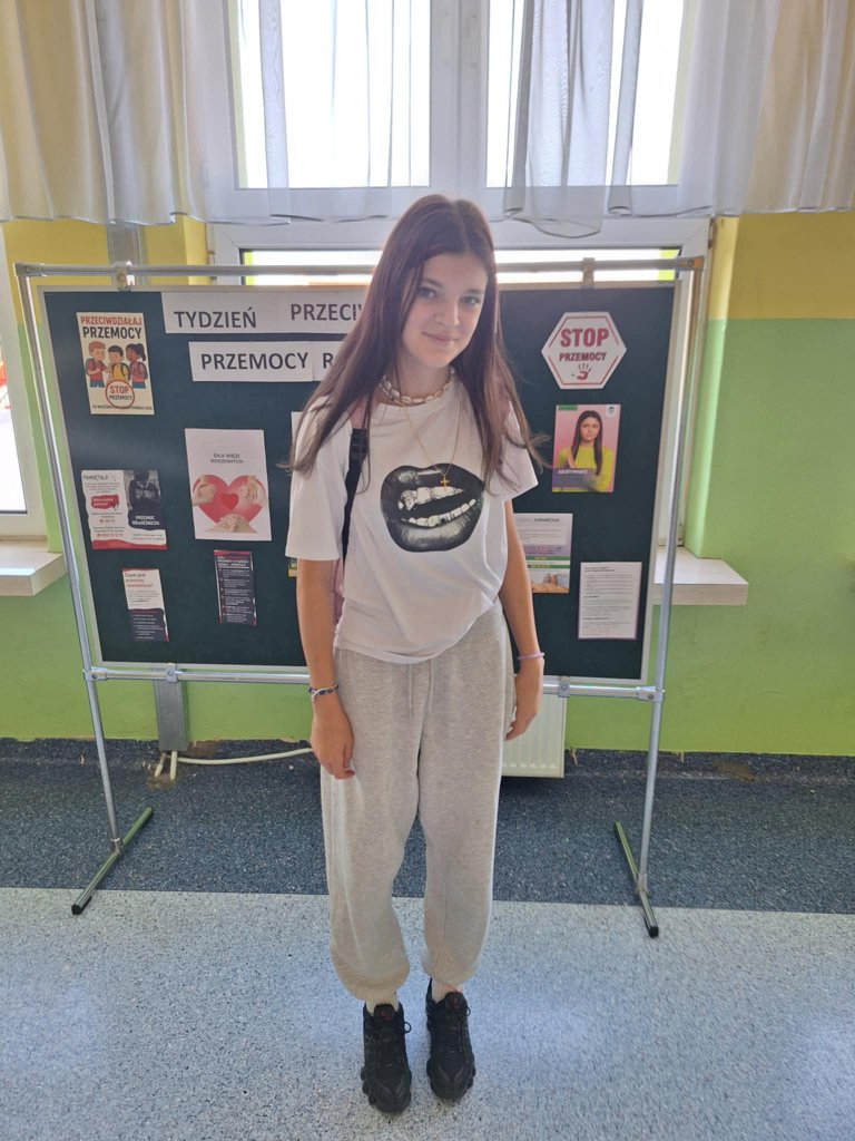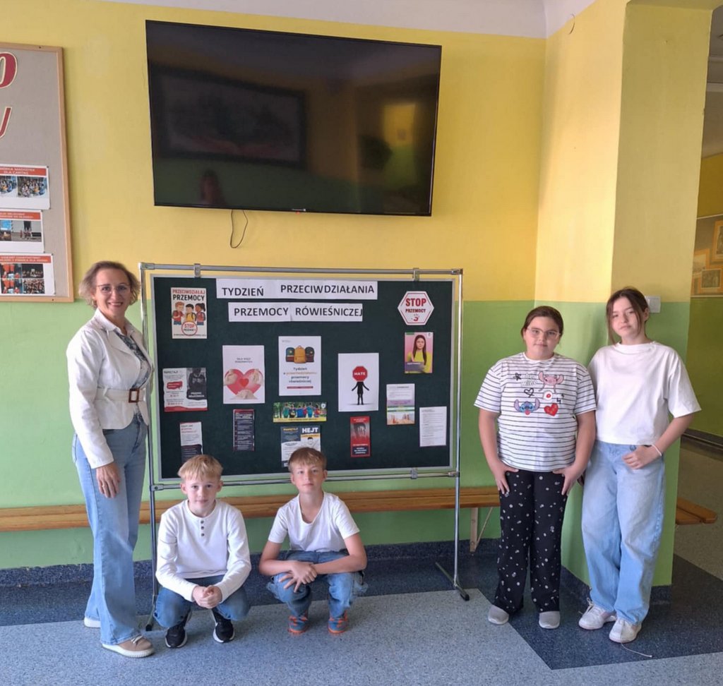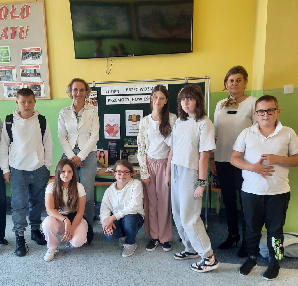 W dniach 29 września – 3 października odbyła się w naszej szkole ogólnopolska akcja Ministerstwa Edukacji Narodowej pod hasłem „Tydzień o przeciwdziałaniu przemocy rówieśniczej”. Cała społeczność szkolna włączyła się w akcję Ministerstwa Edukacji Narodowej. Pokazaliśmy, jak ważne jest dla nas tworzenie atmosfery bezpieczeństwa i akceptacji oraz budowanie relacji opartych na wzajemnym szacunku. Minister Edukacji Barbara Nowacka podkreśliła, że „tworzenie w szkołach atmosfery bezpieczeństwa i szacunku jest priorytetem, a nikt nie powinien godzić się na przemoc i wykluczenie”.