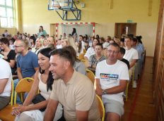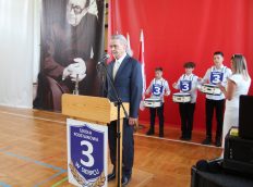 Nowych uczniów powitał Burmistrz Miasta Pan Jarosław Perzyński, Dyrekcja szkoły, Wychowawcy oraz starsi koledzy i koleżanki.