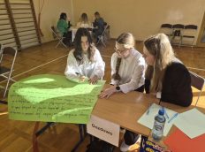 Drużyny rywalizowały w 16 różnorodnych konkurencjach, które przygotowała p. Małgorzata Murawska. W tegorocznym dyktandzie kłopotliwa dla uczestników konkursu okazała się pisownia takich wyrazów jak: ciżba, haniebny, żarliwa, warmińsko-mazurski czy czterdziestodwuipółletni. Inne zadania, m.in. zabawa w językowych detektywów, językowy łamaniec, ortograficzny logogryf, kalejdoskop z przysłowiami oraz frazeologiczna łamigłówka sprawiły zdecydowanie mniej problemów i przyniosły uczestnikom konkursu sporo satysfakcji. Niezwykle atrakcyjne okazały się: rysunkowe kalambury, pantomima czy układanie w zespołach opowiadania najeżonego trudnościami ortograficznymi. Zmagania siódmo- oraz ósmoklasistów oceniała komisja w składzie: p. Magdalena Szmigielska (nauczyciel języka polskiego z SP 2 w Sierpcu), p. Anna Dąbrowska (nauczyciel języka polskiego z SP w Gozdowie), Grażyna Gałązka, p. Agnieszka Jezierska-Chalicka i p. Małgorzata Murawska (nauczyciele języka polskiego z SP 3 w Sierpcu).