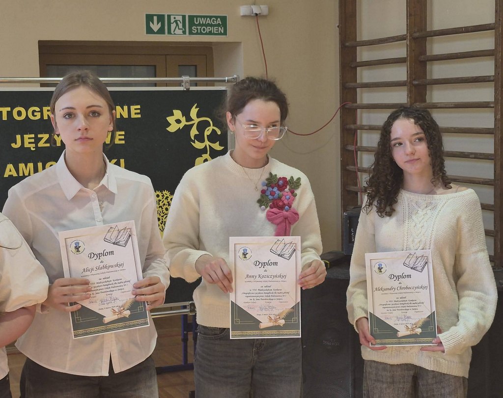 6 marca 2026r. w naszej szkole odbył się międzyszkolny konkurs pod hasłem Ortograficzne i językowe łamigłówki dla mądrej główki. W VIII już edycji konkursu wzięli udział uczniowie klas siódmych i ósmych powiatu sierpeckiego. Celem tego ciekawego polonistycznego przedsięwzięcia, jak w latach poprzednich, było propagowanie wśród młodzieży poprawności językowej i ortograficznej, wyrabianie nawyku poprawnego posługiwania się polszczyzną i świadomego unikania rażących błędów językowych oraz rozwijanie zainteresowań humanistycznych uczniów szkół podstawowych, a także integracja środowiska uczniowskiego z terenu powiatu sierpeckiego.