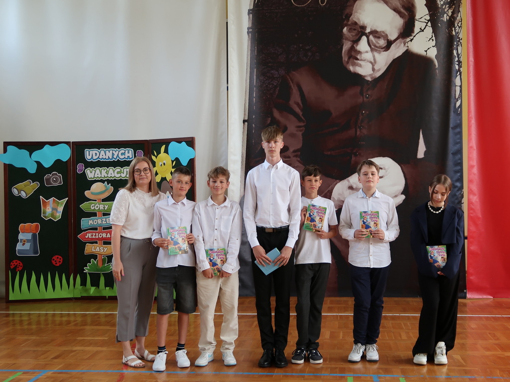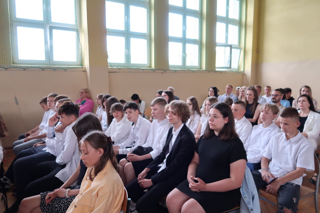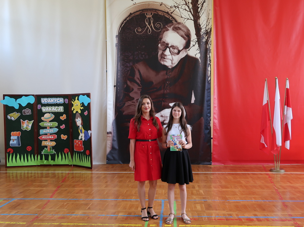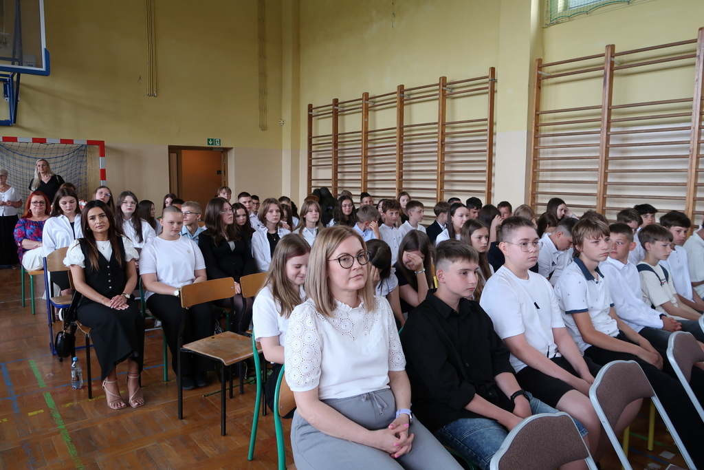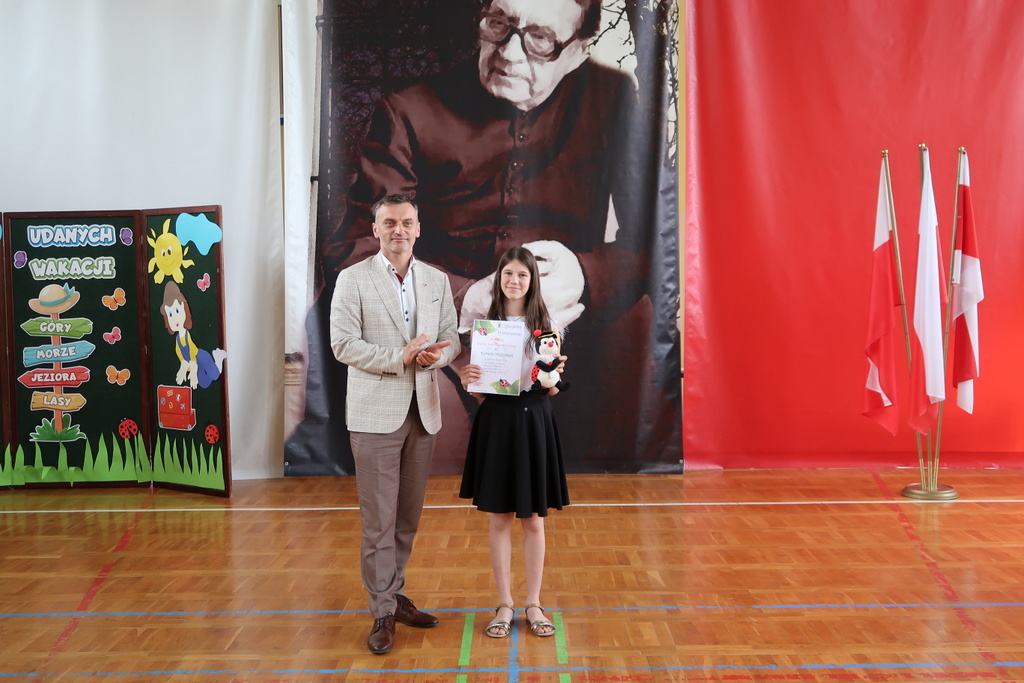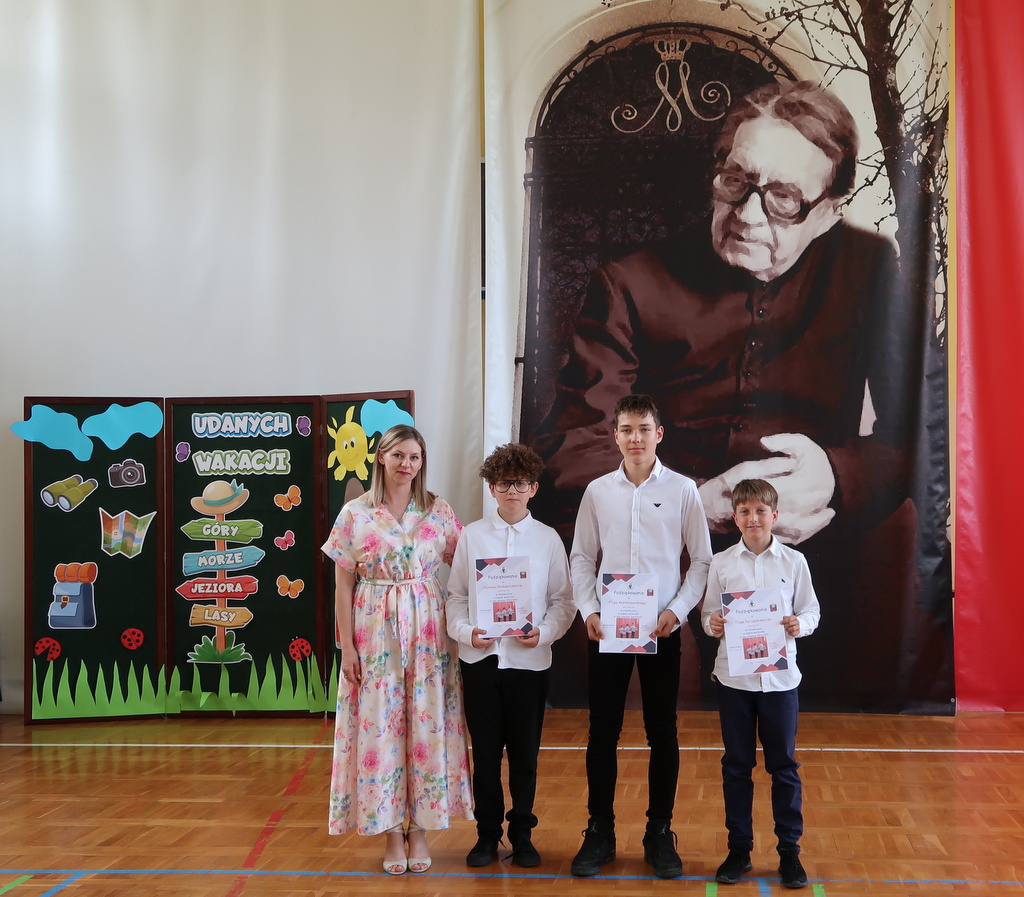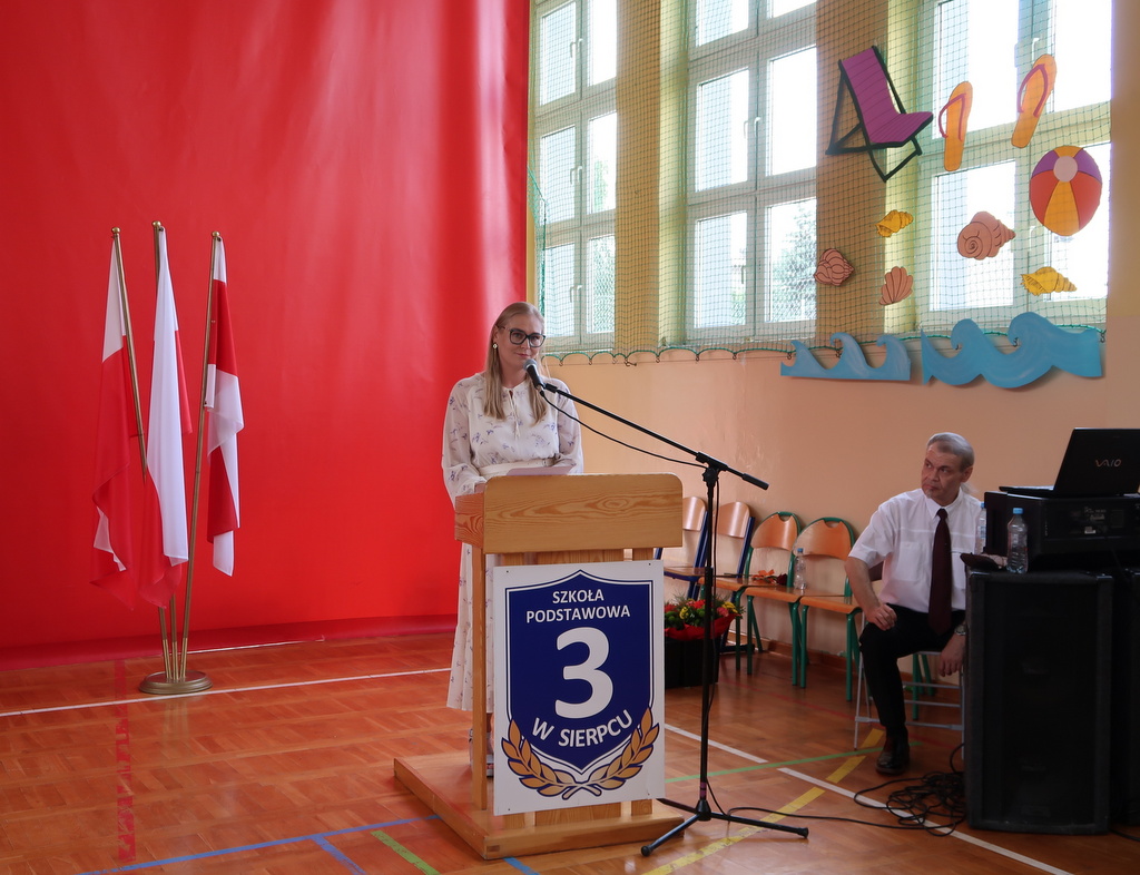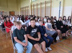 Pani wicedyrektor Elżbieta Kamińska podsumowała mijający rok szkolny, dziękując uczniom za ich zaangażowanie, nauczycielom za trud włożony w nauczanie, a rodzicom za codzienne wsparcie. Życzyła również wszystkim udanych i bezpiecznych wakacji oraz dalszych sukcesów w kolejnym roku szkolnym.