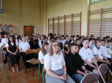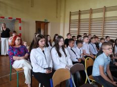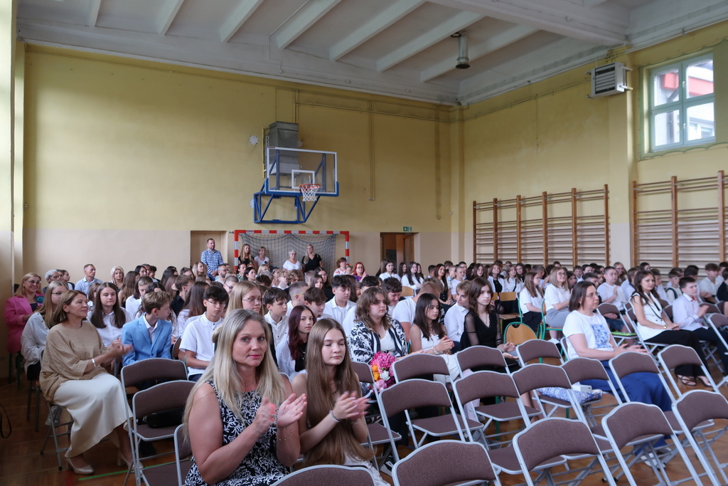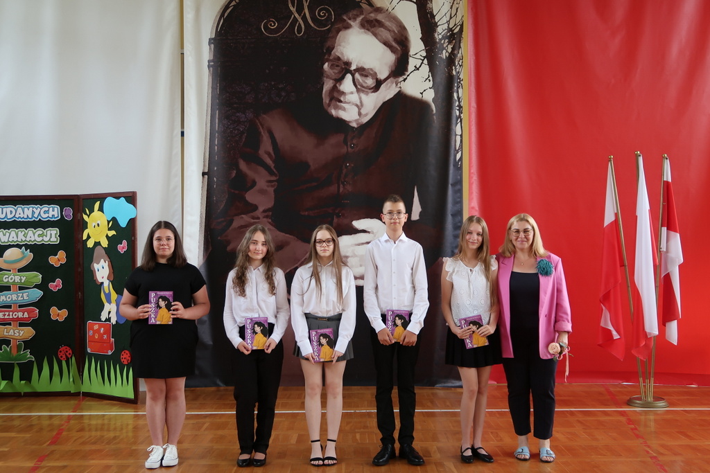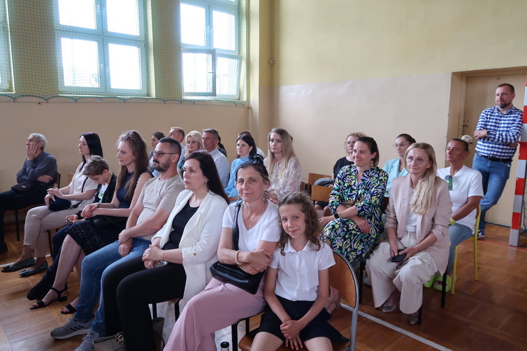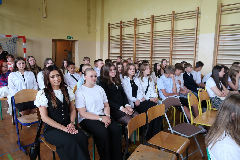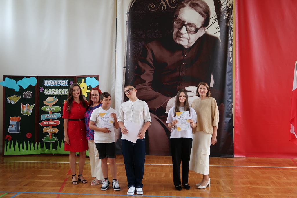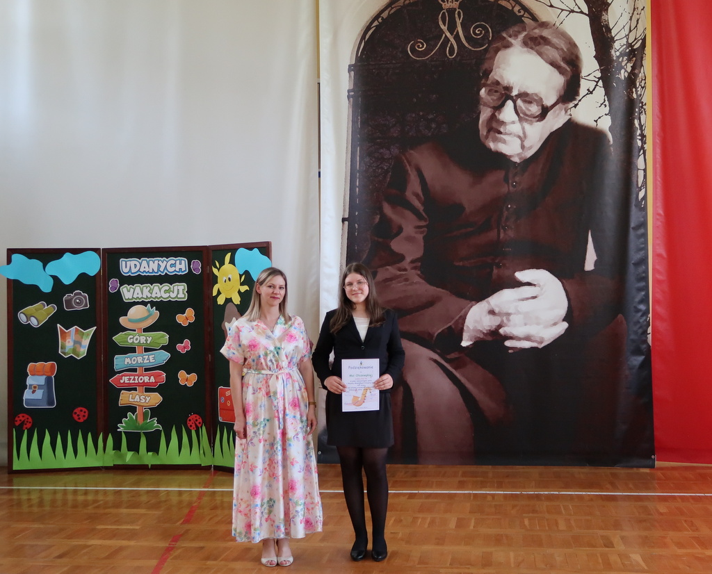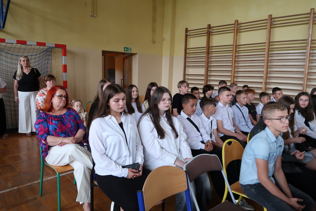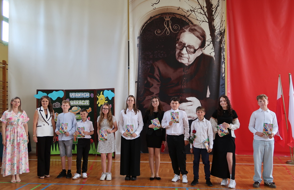 Pani wicedyrektor Elżbieta Kamińska podsumowała mijający rok szkolny, dziękując uczniom za ich zaangażowanie, nauczycielom za trud włożony w nauczanie, a rodzicom za codzienne wsparcie. Życzyła również wszystkim udanych i bezpiecznych wakacji oraz dalszych sukcesów w kolejnym roku szkolnym.